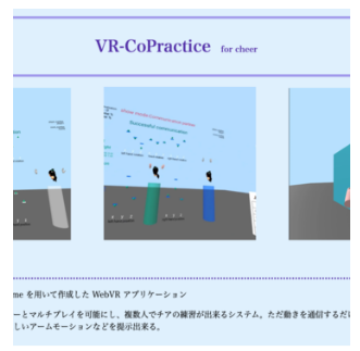 2021/7/1, 大西力登, 神寶結美子, 中村亮太, “HMDを用いたバーチャル空間におけるマルチユーザ型チア練習システム”, DICOMO2021, 最優秀プレゼンテーション賞, ★, ★, 大西力登, 学部2年生, 国内学会, https://dicomo.org/cfp/